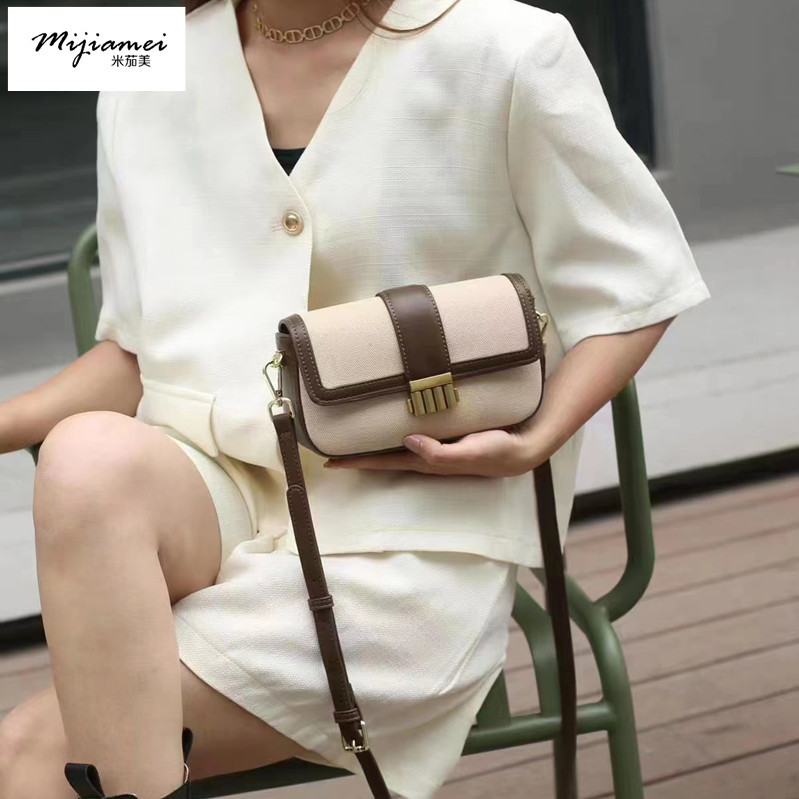 Mijiamei米茄美 高级小众拼色腋下包 咖啡色M1315
