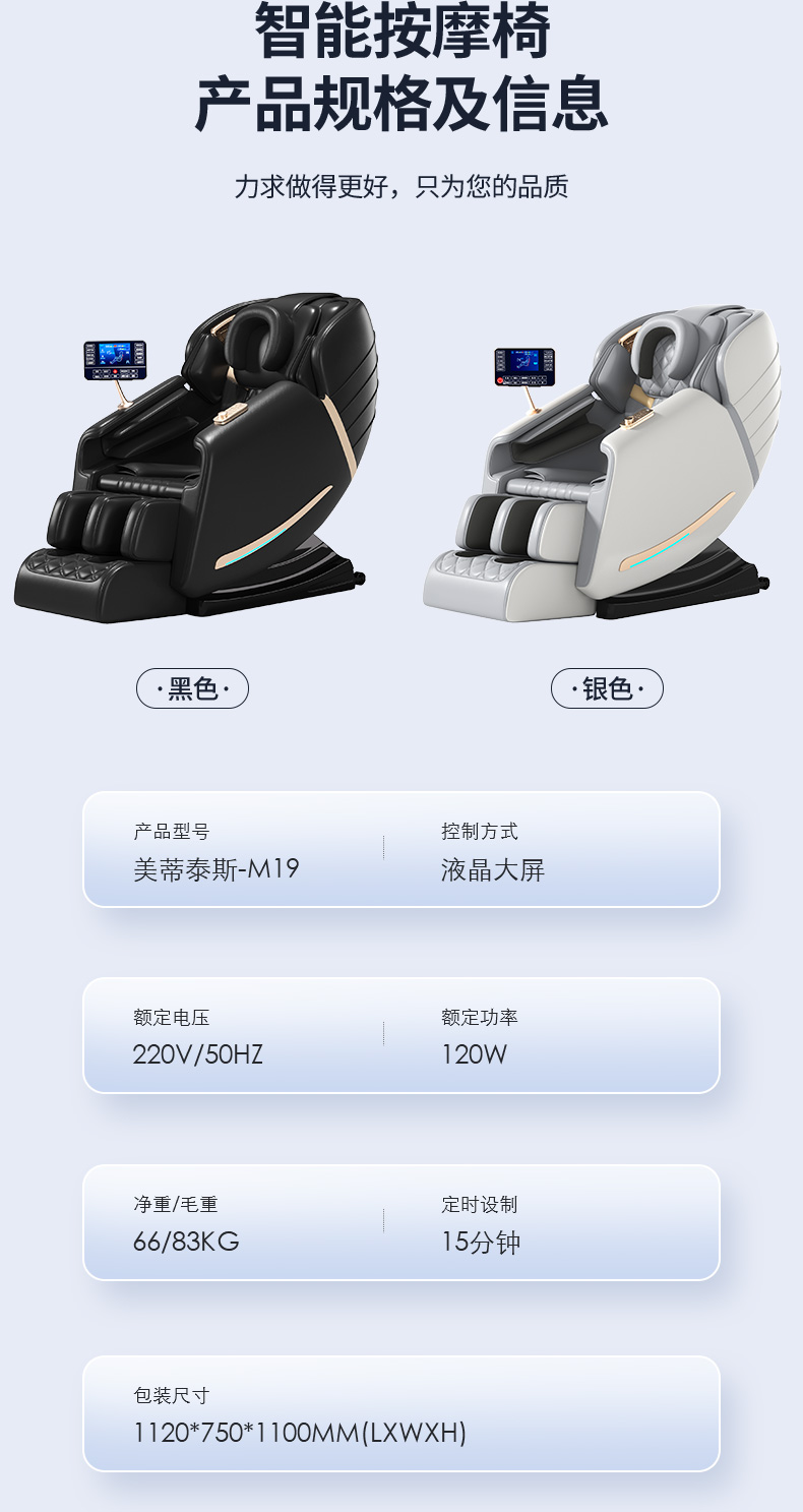 美蒂泰斯 零重力太空舱按摩椅 液晶触摸大屏 腰部热敷 HIFI蓝牙语音 型号:M19
