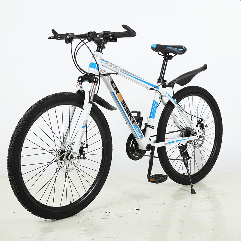 越崎山地自行车男女成人单车变速双碟刹减震自行车铠美尔白蓝色21速高配