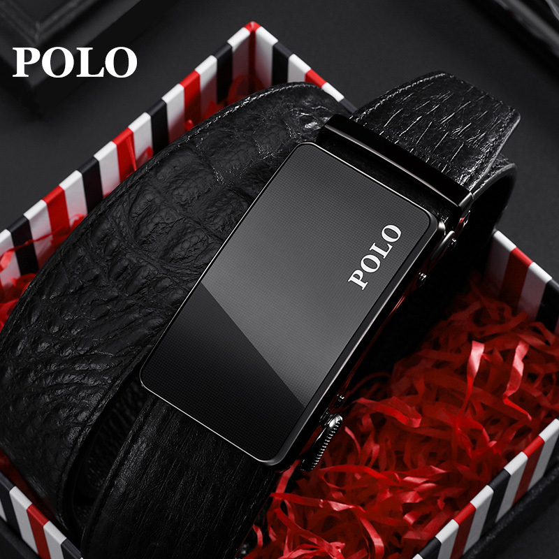 Polo男士皮带商务休闲鳄鱼纹腰带双头层牛皮男腰带011571
