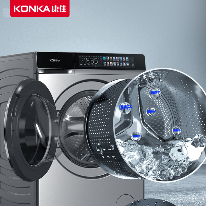 康佳洗衣机10公斤变频全自动滚筒洗衣机一级能效XQG100-BB12161T