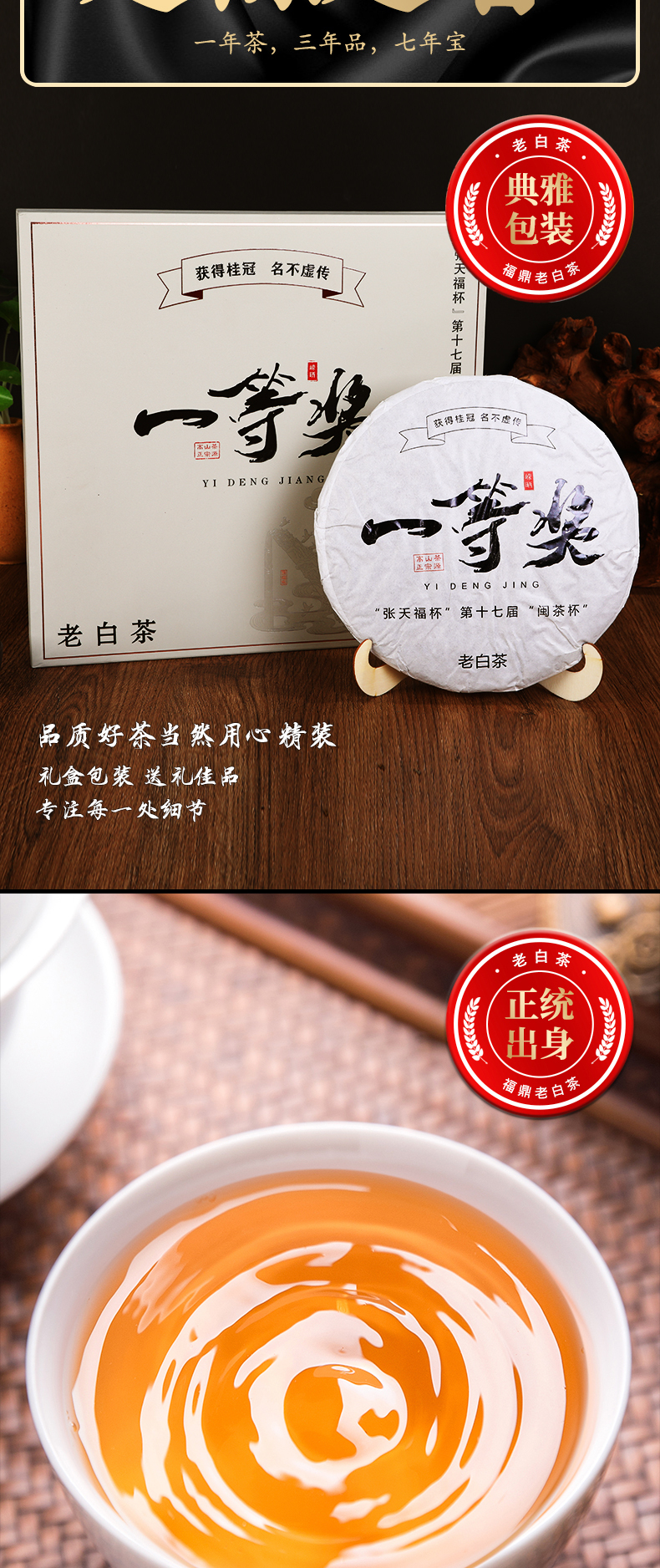 闽缘茶轩福鼎白茶一等奖高山茶叶老白茶饼350g
