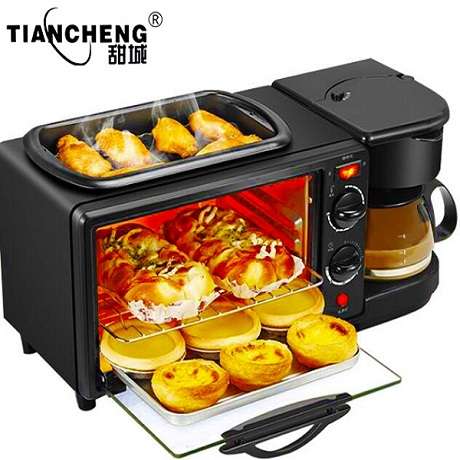 【 营养早餐 美味健康】智能早餐机 多功能 电烤箱+咖啡机+煎烤盘三合一早餐吧烤面包机 烧烤煮同步 早餐吧-黑红两个规格可选 颜色款式请下单备注