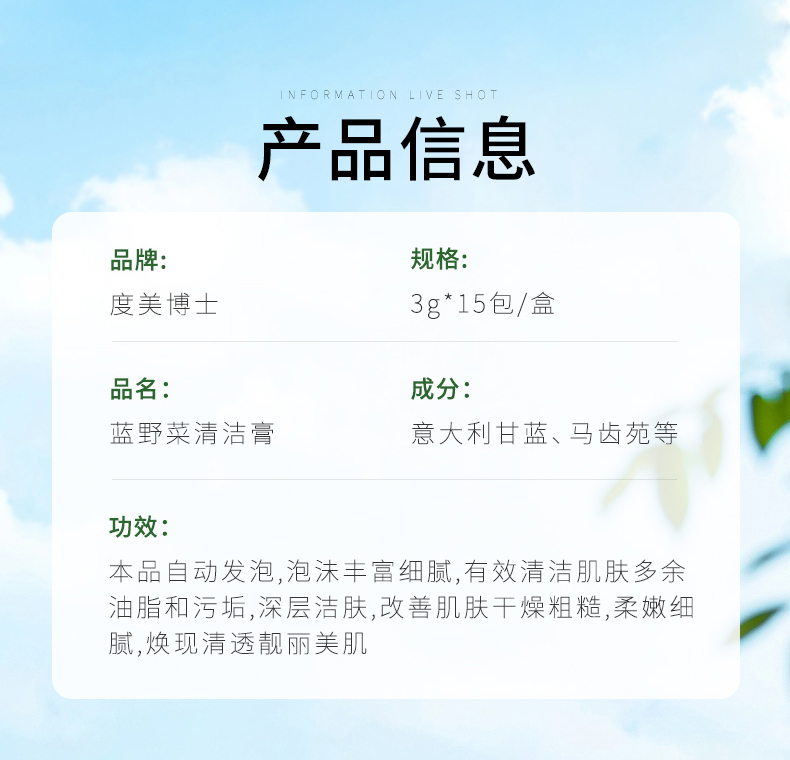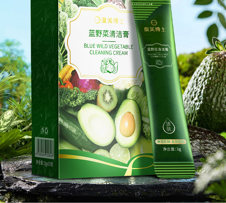 度美博士蓝野菜清洁膏自动起泡深度清洁肌肤清洁膏3g*15包*4盒