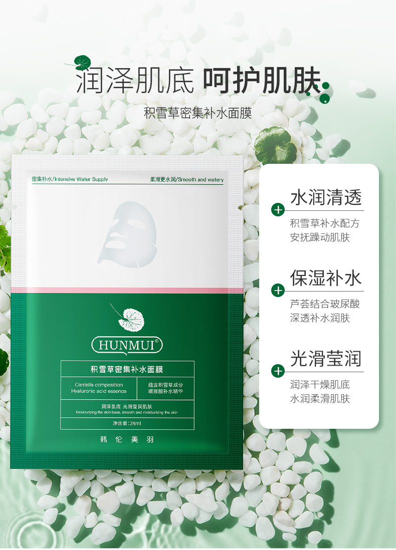 韩伦美羽积雪草小分子密集补水保湿修护面膜28ml/片*10片
