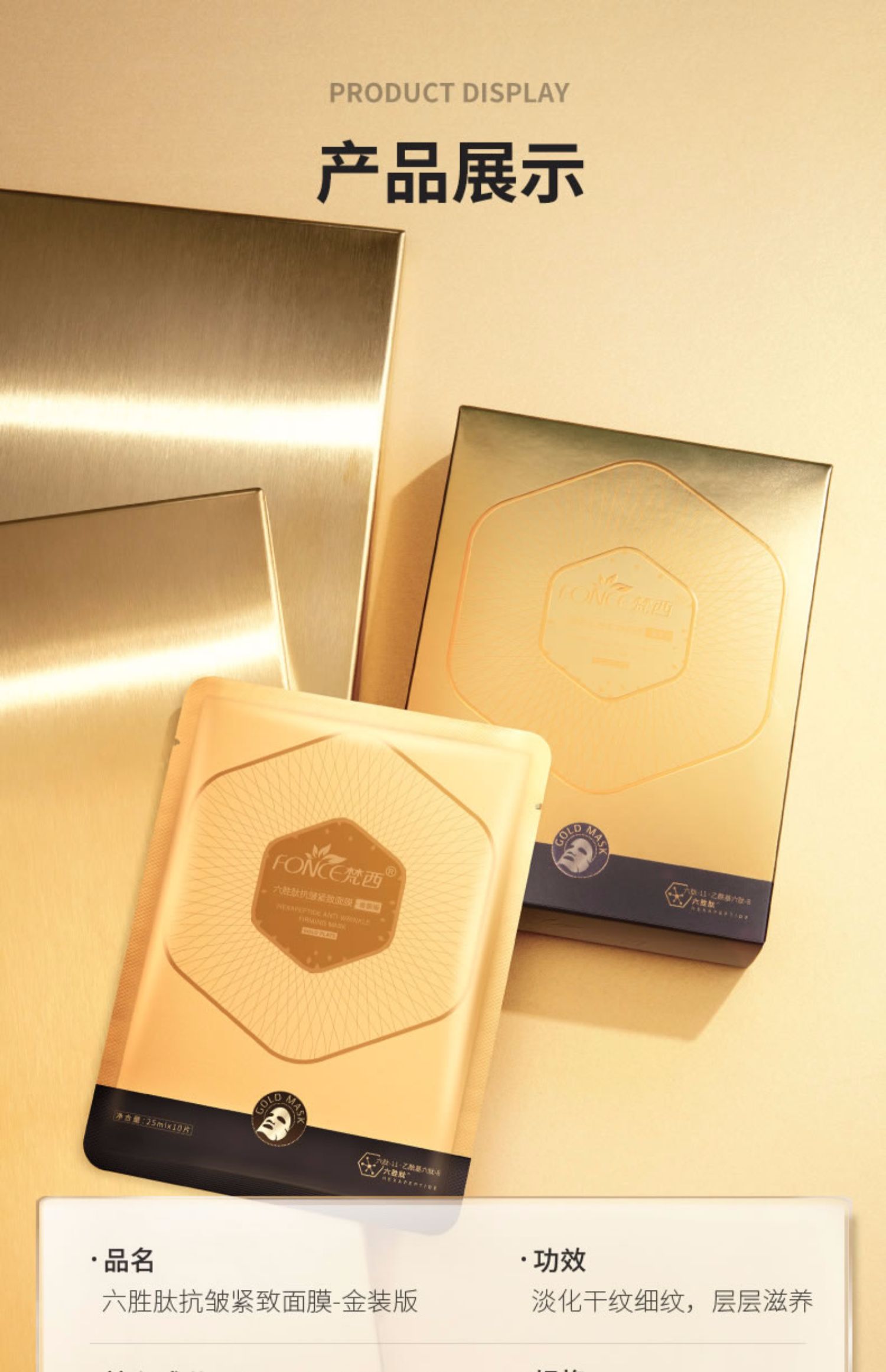 拍一发二 FONCE 梵西 六胜肽抗皱紧致面膜 金装版 10片/盒