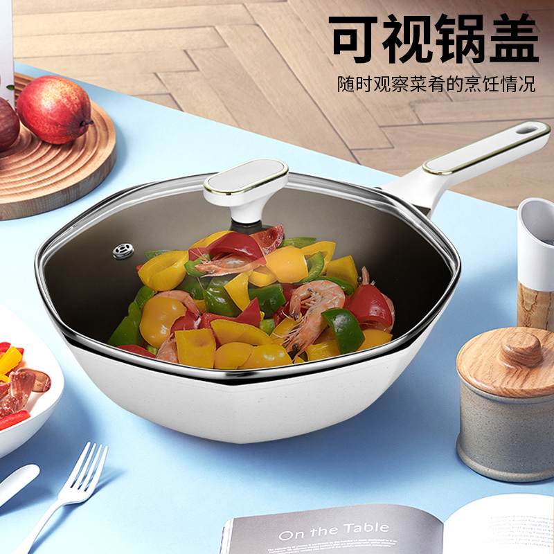 翰乐HL-C166八角不粘炒锅多功能合金高颜值炒锅(象牙白)