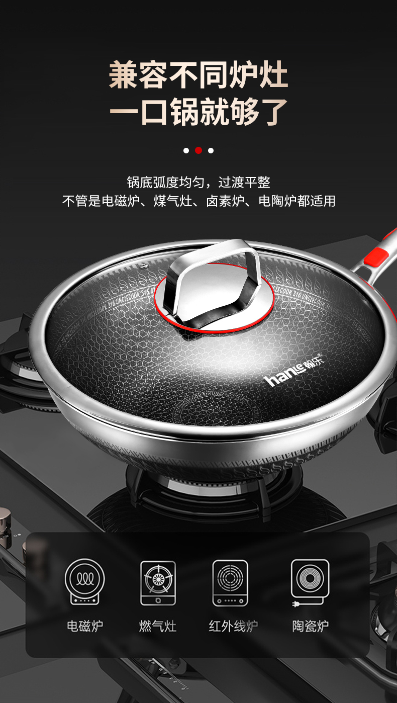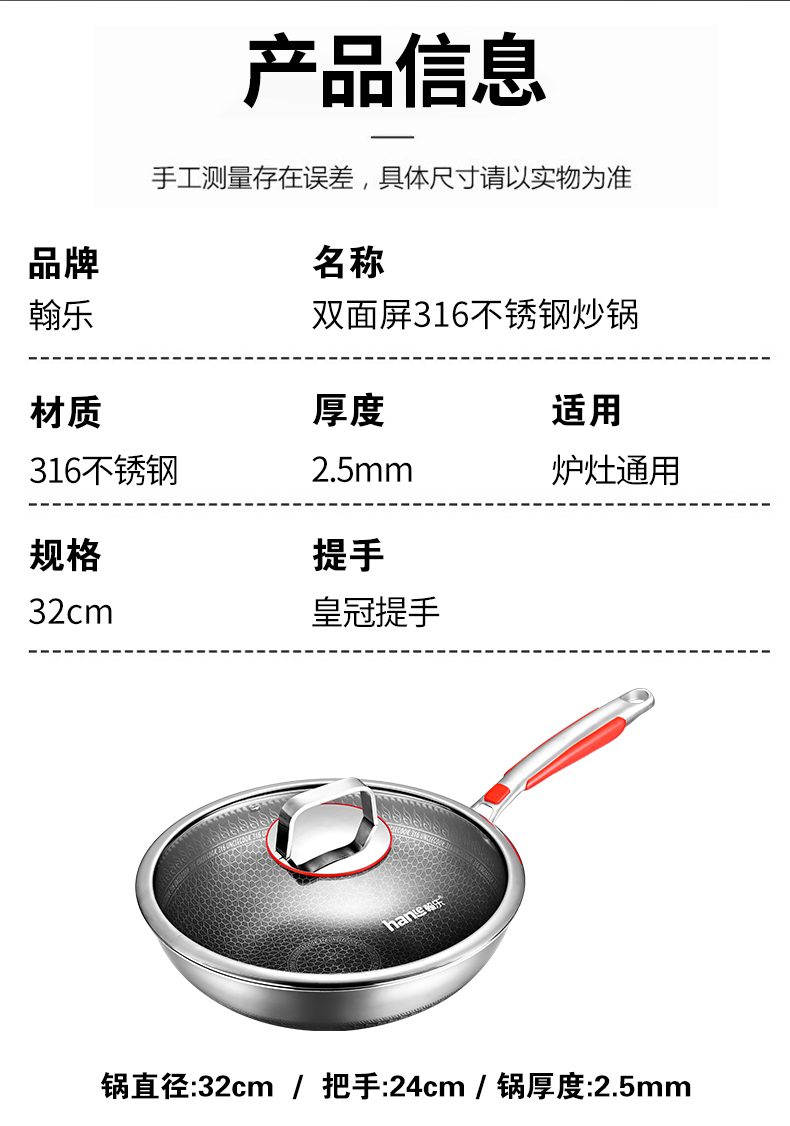 翰乐316双面屏豪华款皇冠提手盖32CM HL-F05送铲子+百洁布