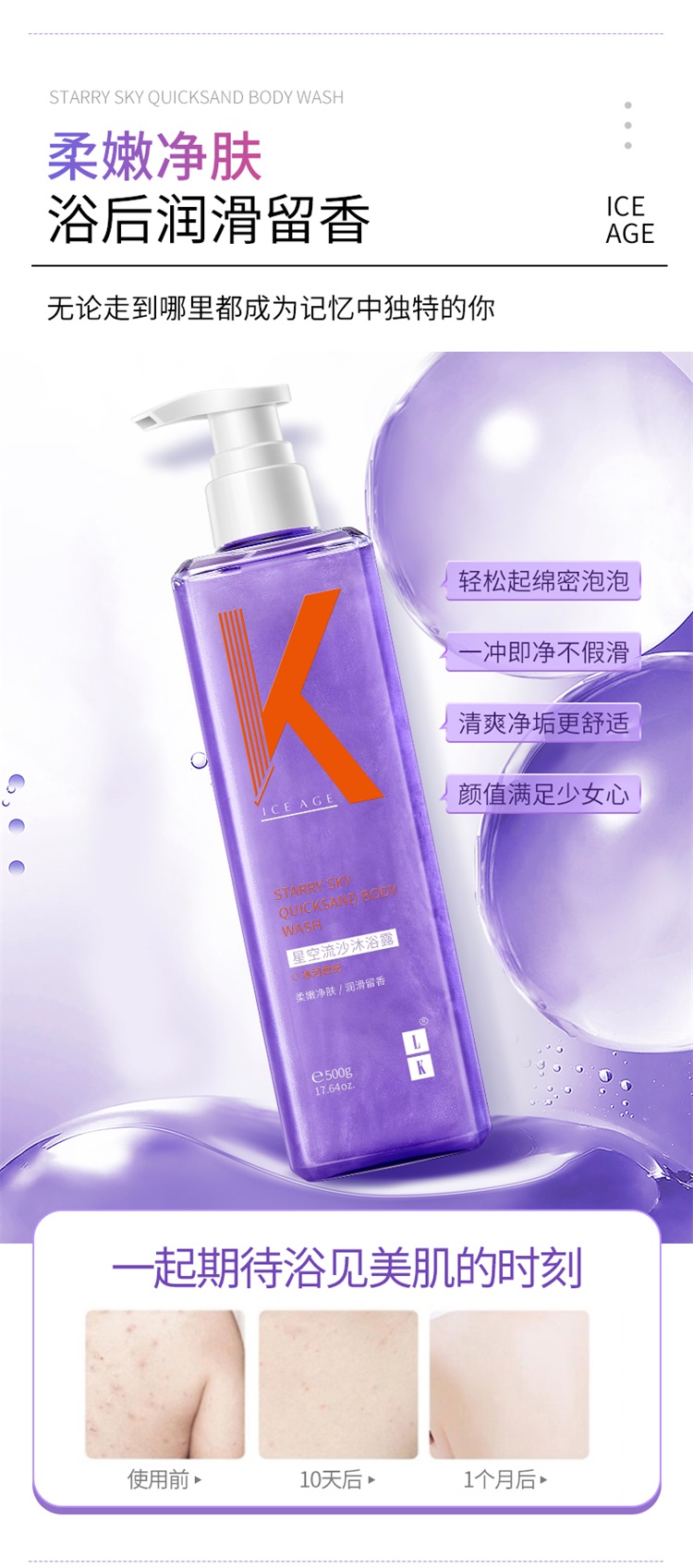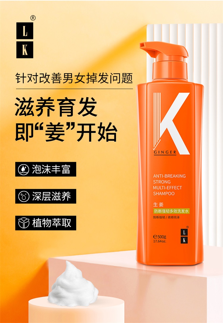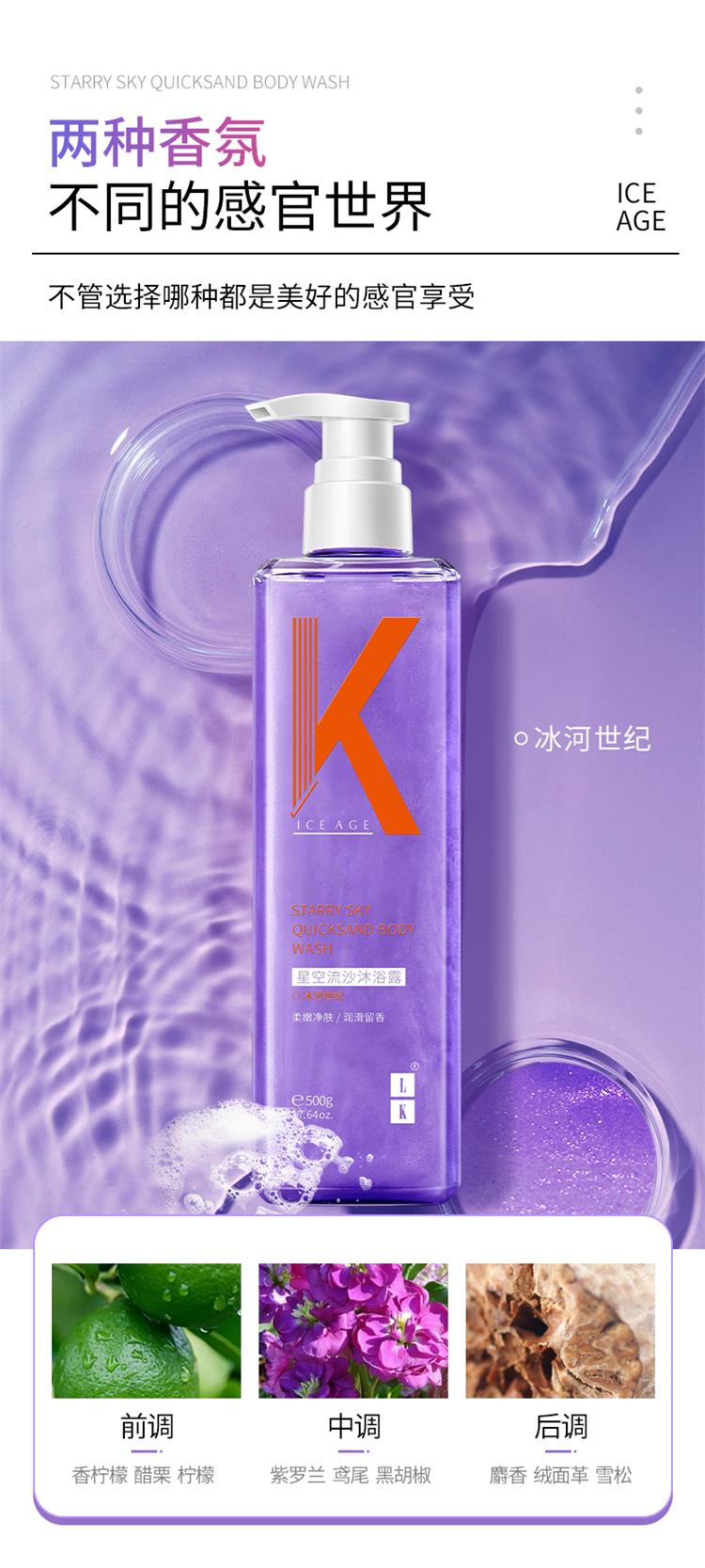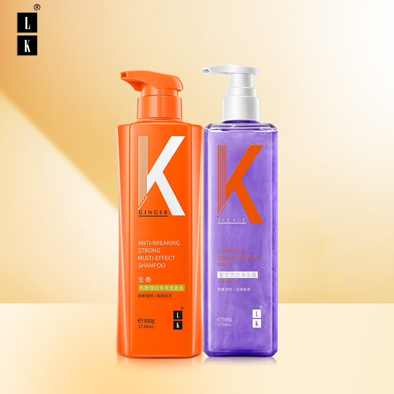 LK生姜香氛两件套(生姜防断强韧多效洗发水500g+星空流沙沐浴露(冰河世纪)500g)