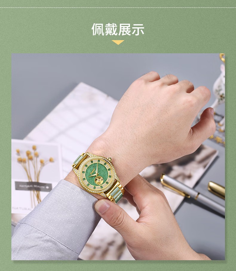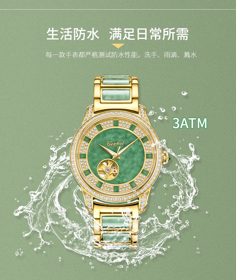 戈菲尔情侣装镂空翡翠机械手表全自动机械机芯时尚腕表【西藏不发货】