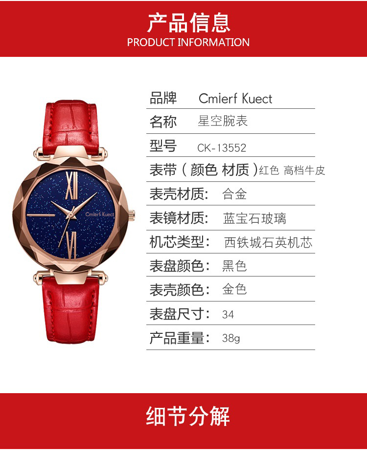 CmierfKuect新款星空腕表CK-13552【宁夏/青海/内蒙古/甘肃/黑龙江/吉林/辽宁不发货】