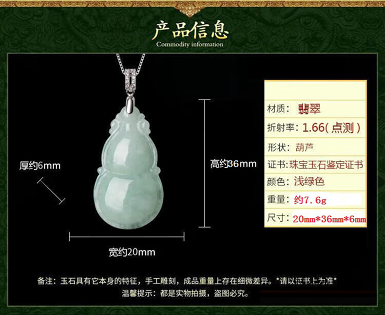 马传玉 A货翡翠福禄葫芦精美吊坠 MCY007