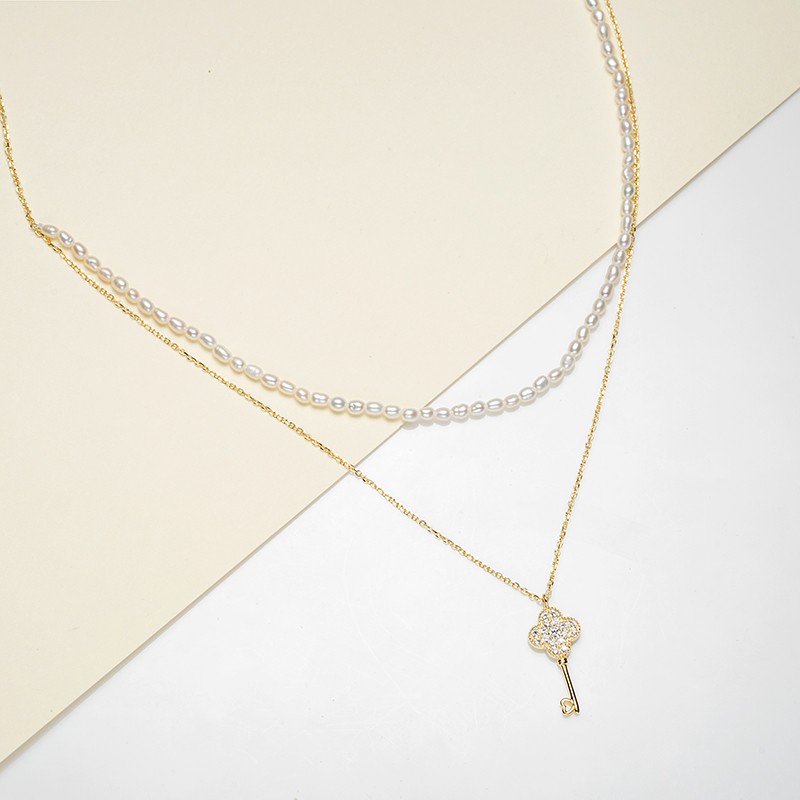奥利维拉DF-J2 钥匙叠链 淡水珍珠 纯银镀18K金