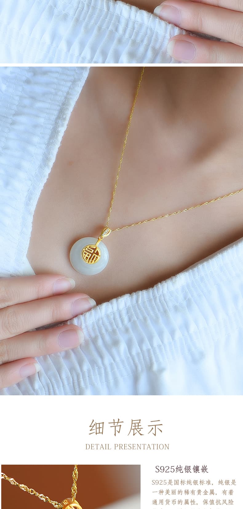 老凤祥纯银925银玉髓平安圆满经典平安扣项链LFXSK0311