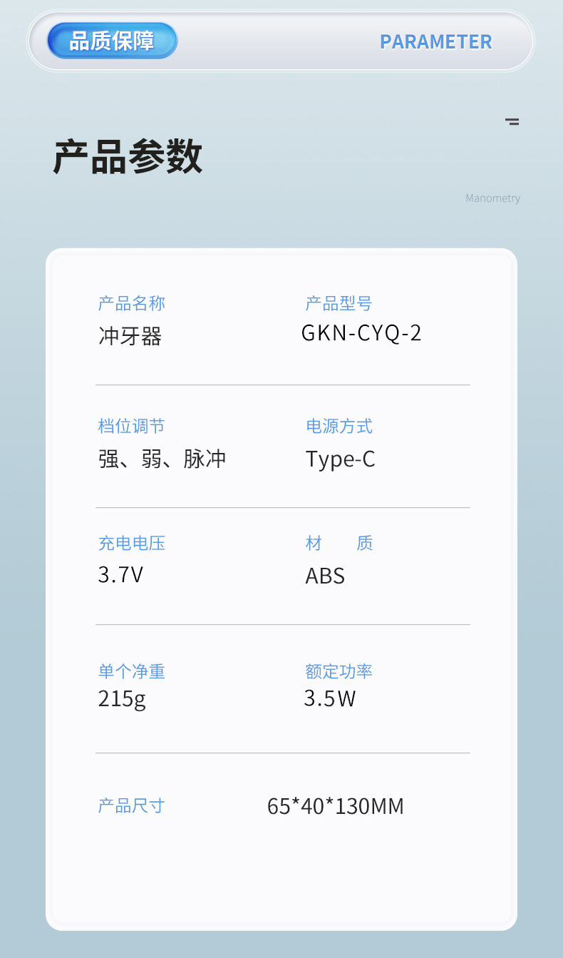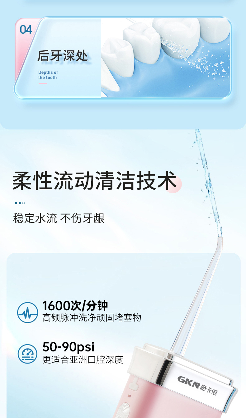 格卡诺家用便携180ML大容量水箱电动冲牙器(拼色)