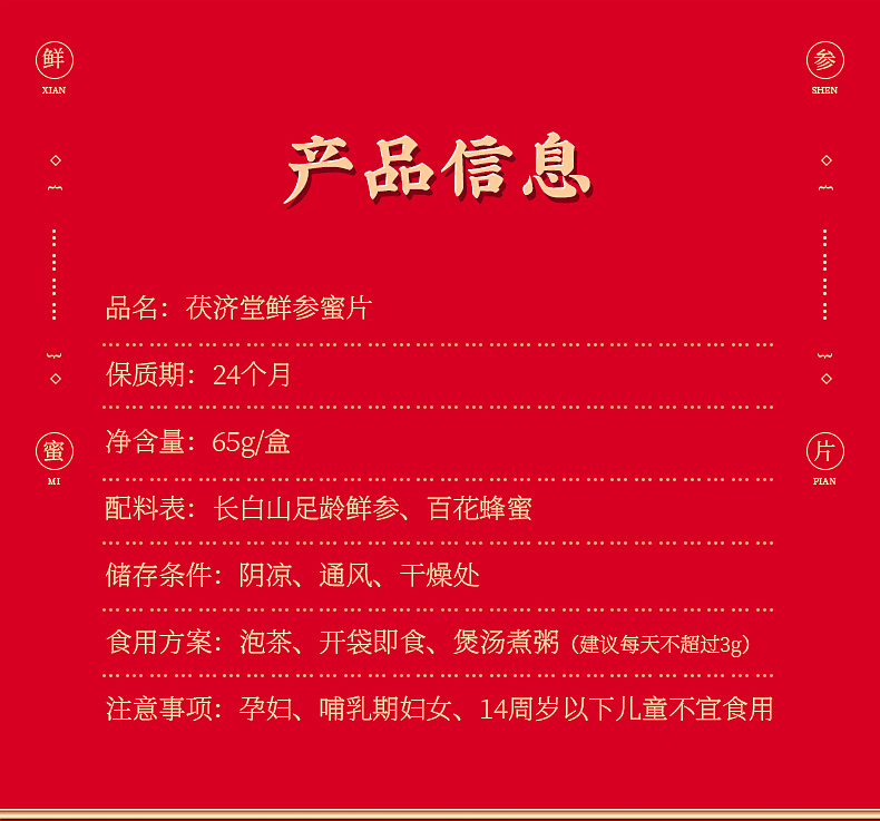 茯济堂 鲜参蜜片 65克【新疆,西藏,青海,内蒙古,宁夏不发货】