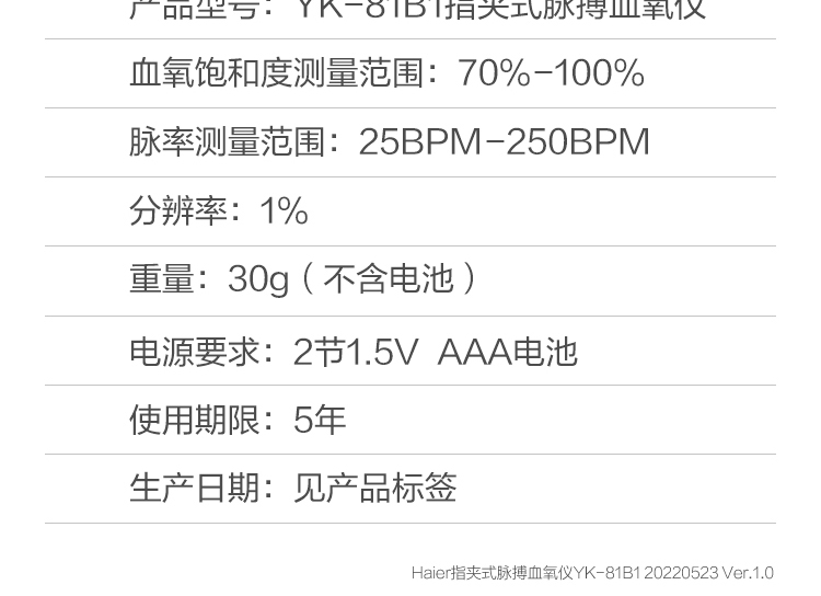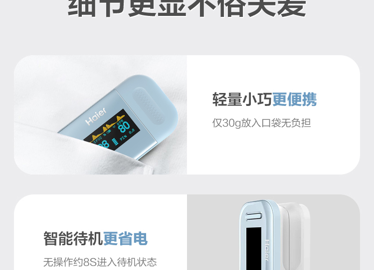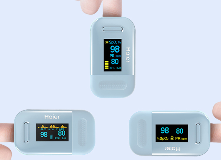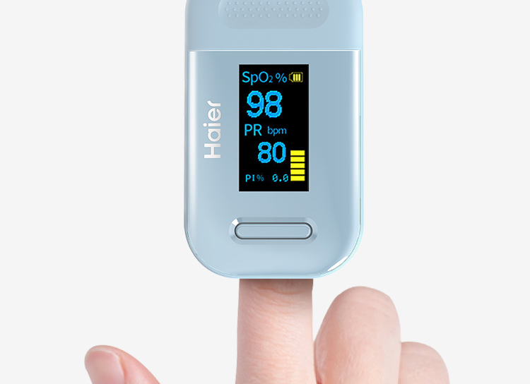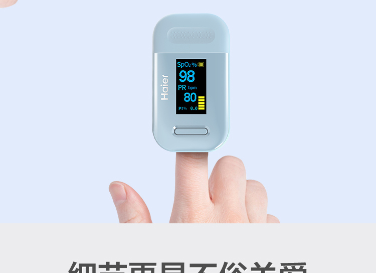 海尔 Haier 血氧仪指夹式医用级 家用指压式儿童手指心跳心率脉搏监测仪 指尖血氧饱和度自检测仪器81B1