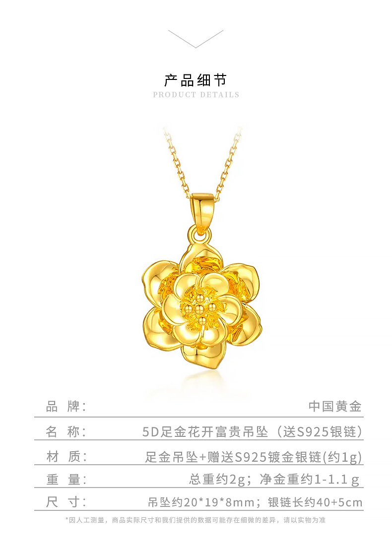 中国黄金 5D足金花瓣珍珠吊坠 ZGHJ211174 【新疆西藏不发货】