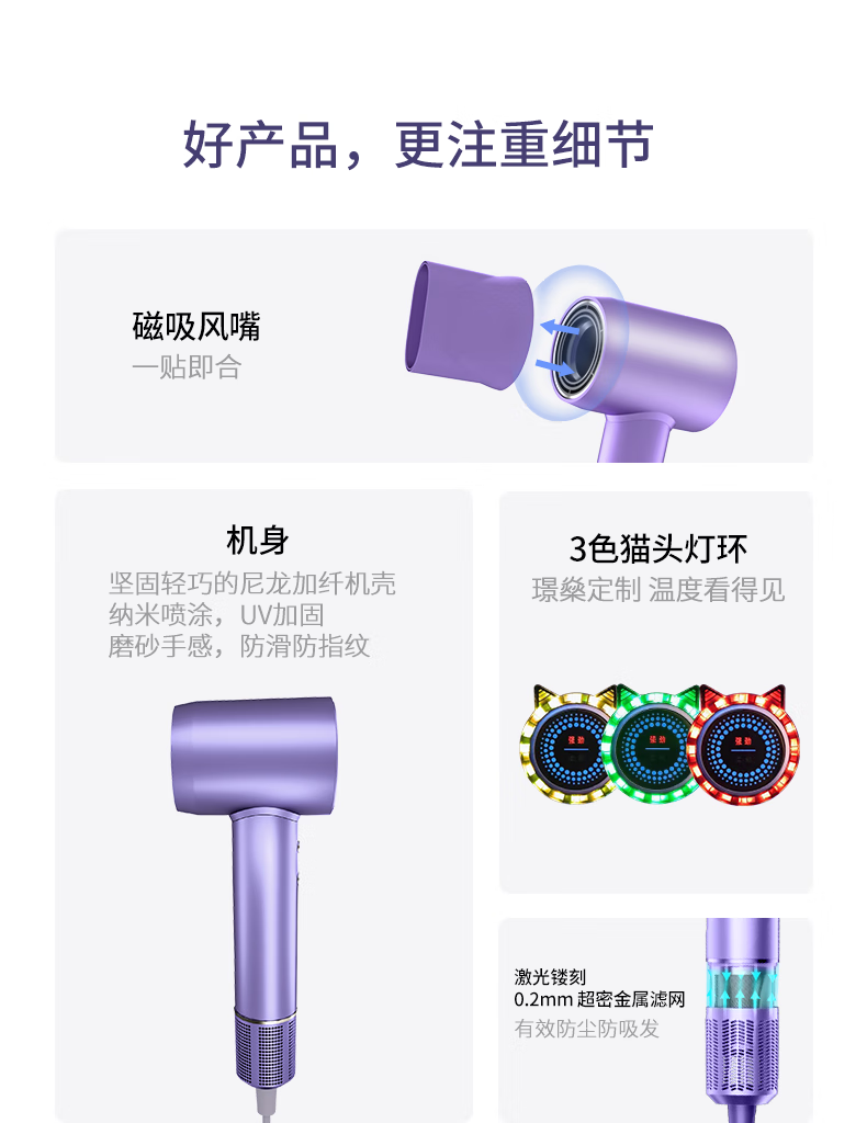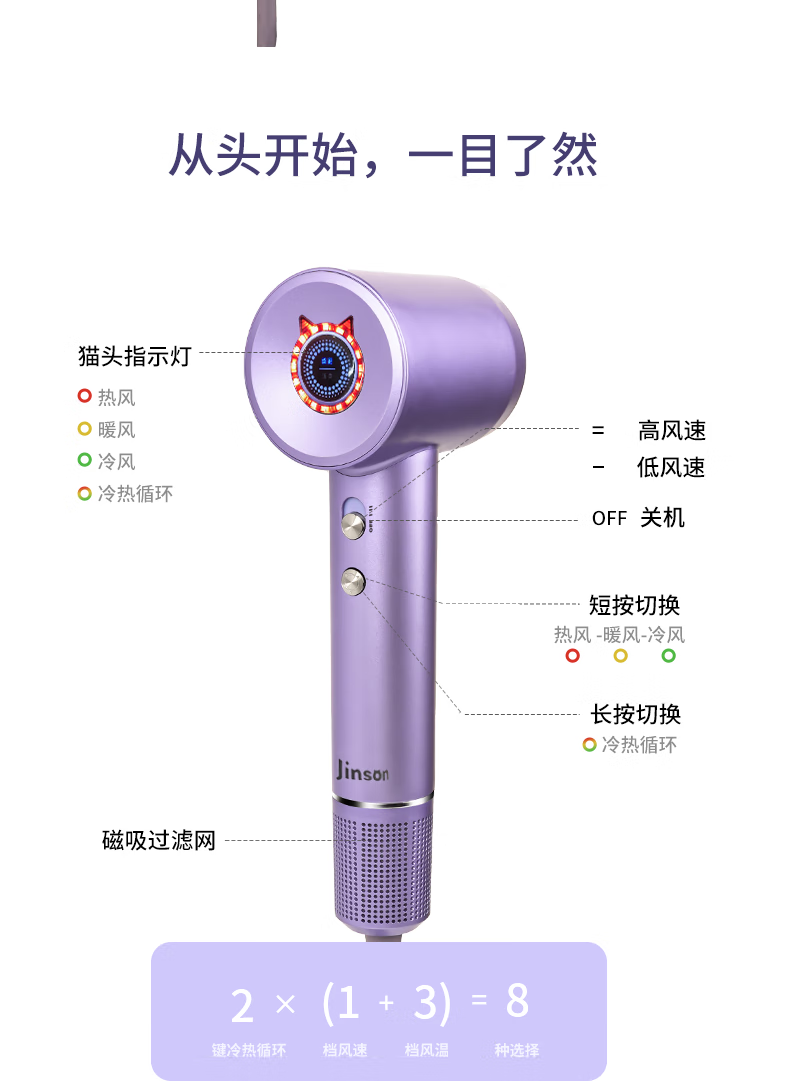 包邮 璟燊Jinson高速吹风机家用负离子护发电吹风低噪大风力速干大功率吹风筒 ZCY885