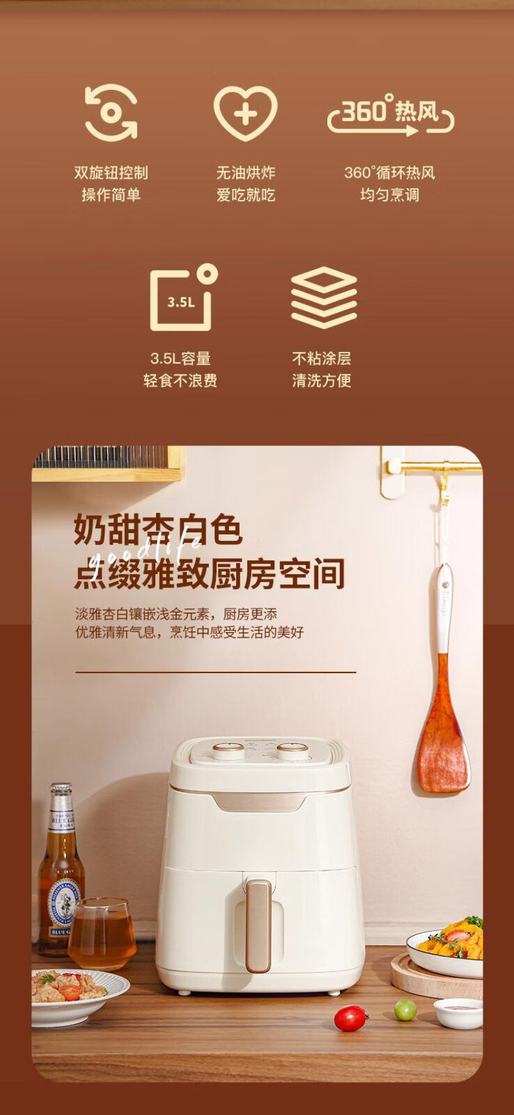 大宇/DAEWOO 多功能空气炸锅 无油烤薯条不粘涂层DYKZ-3502