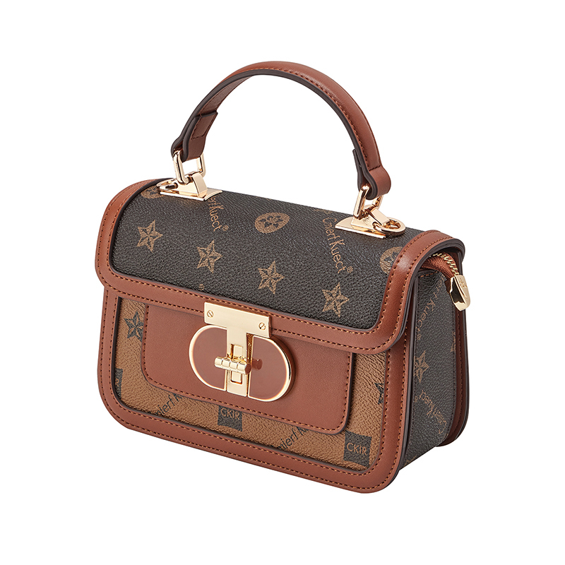 Cmierf Kuect奢侈品高级感复古女士手提斜挎盒子包CK-1289A深棕色