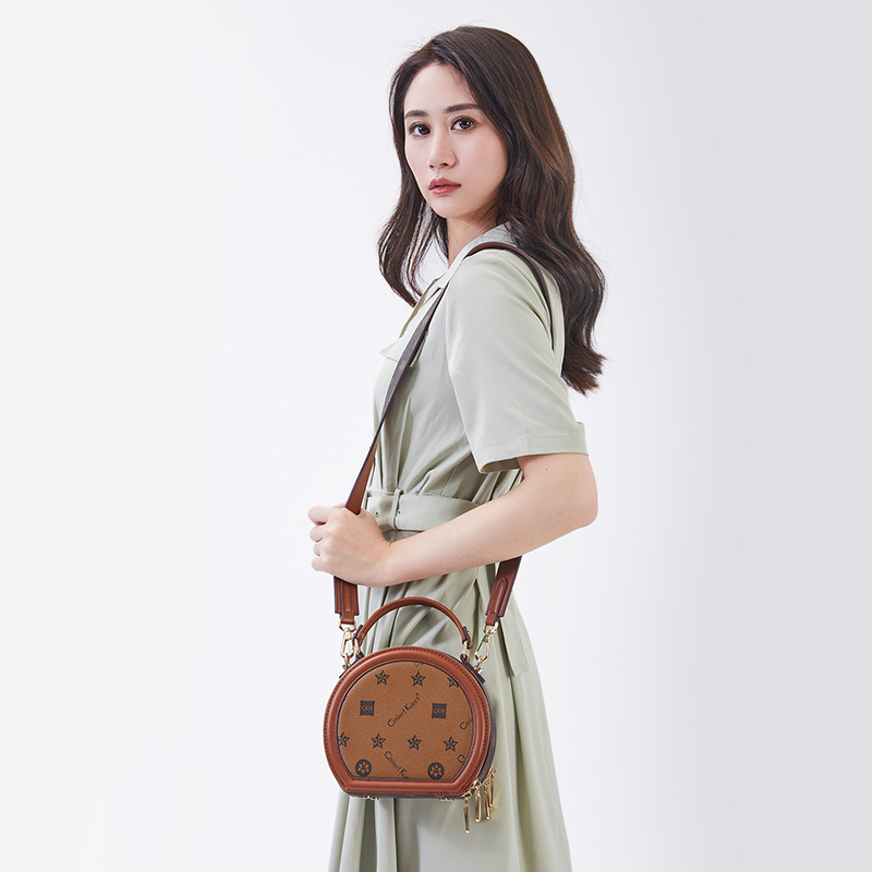 Cmierf Kuect轻奢高级感时尚单肩女圆饼包CK-2020A浅棕色