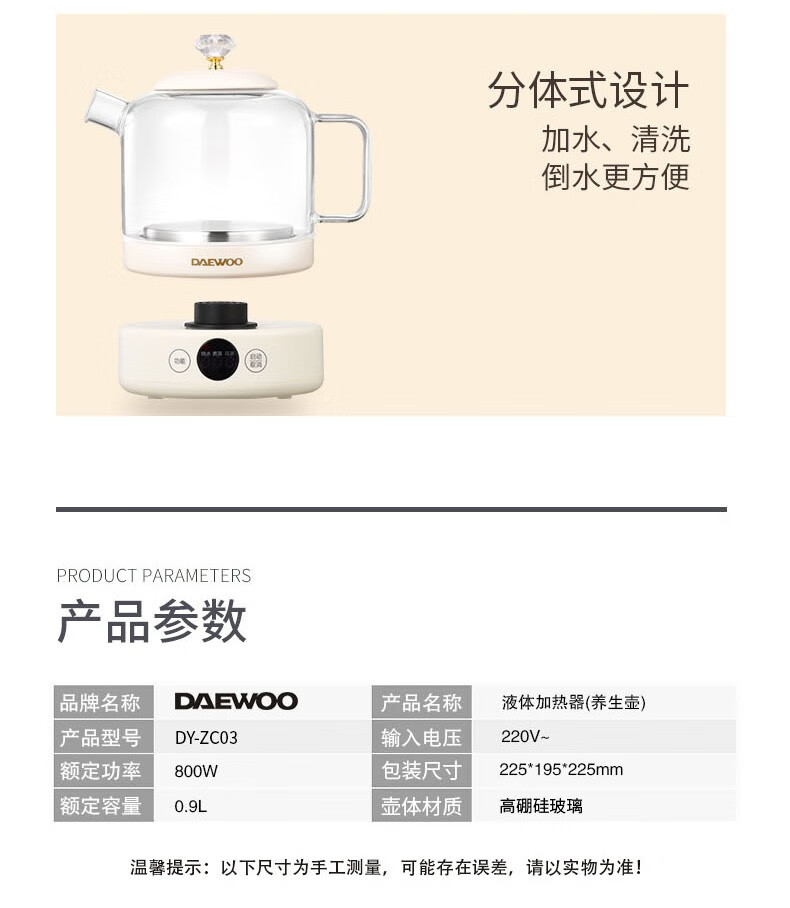 大宇/DAEWOO 家用多功能全自动烧水壶煮茶器办公室小型养生壶DY-ZC03