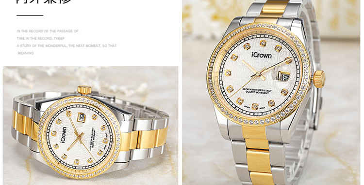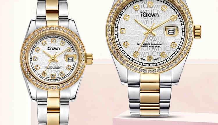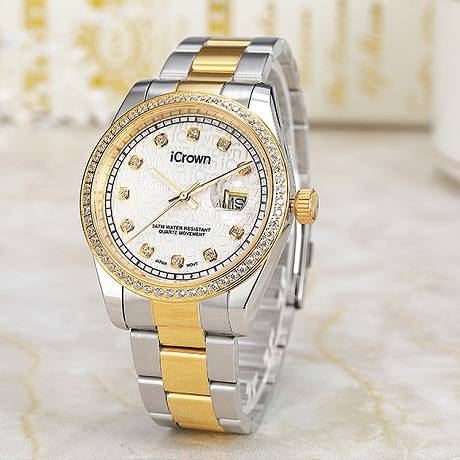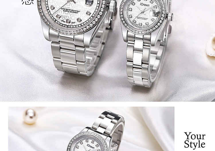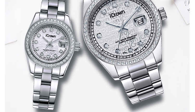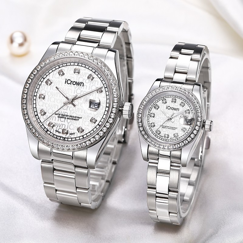 艾克朗icrown 包邮爵士系列男女款手表全钢表锆石手工镶嵌豪华气质时尚潮流246003