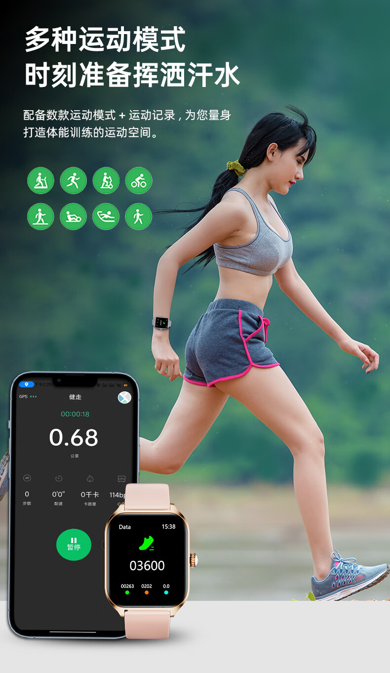 LEFIT 勒菲特 普区包邮- LX306轻薄型智能蓝牙手表多功能运动心率血压音乐通用代计步健康防水